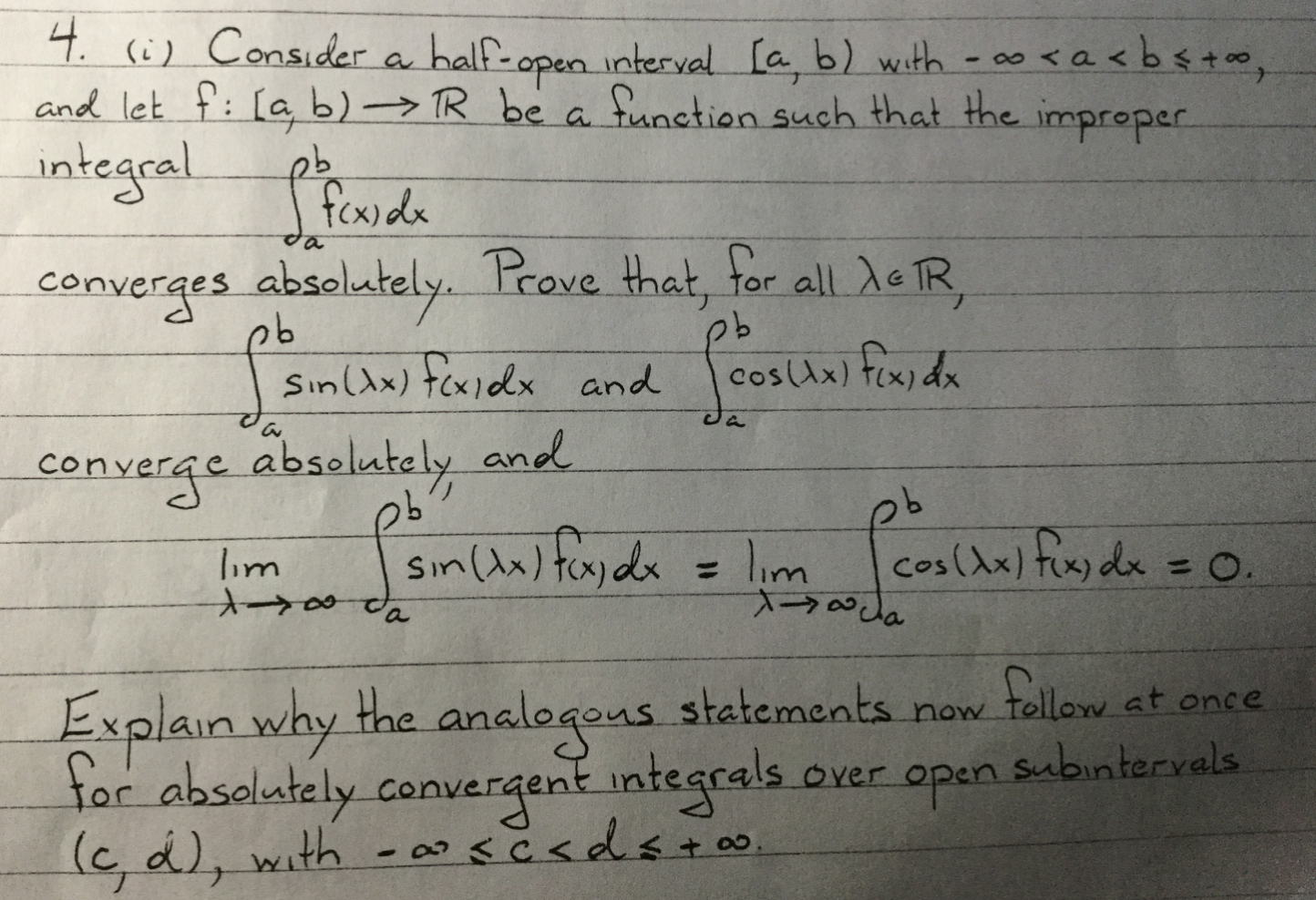4. (i) Consider a half-open interval [a, b) with - 00 and let f: [a...