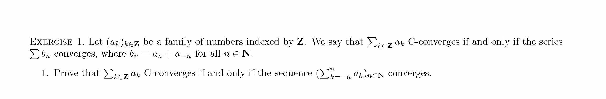 EXERCISE 1. Let (ak)kez be a family of numbers indexed by Z. We say...