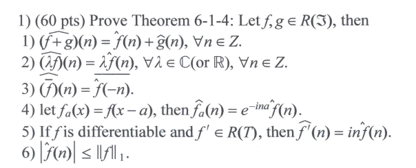 1) (60 pts) Prove Theorem 6-1-4: Let f,g e R(3), then 1) (f+g)(n)...