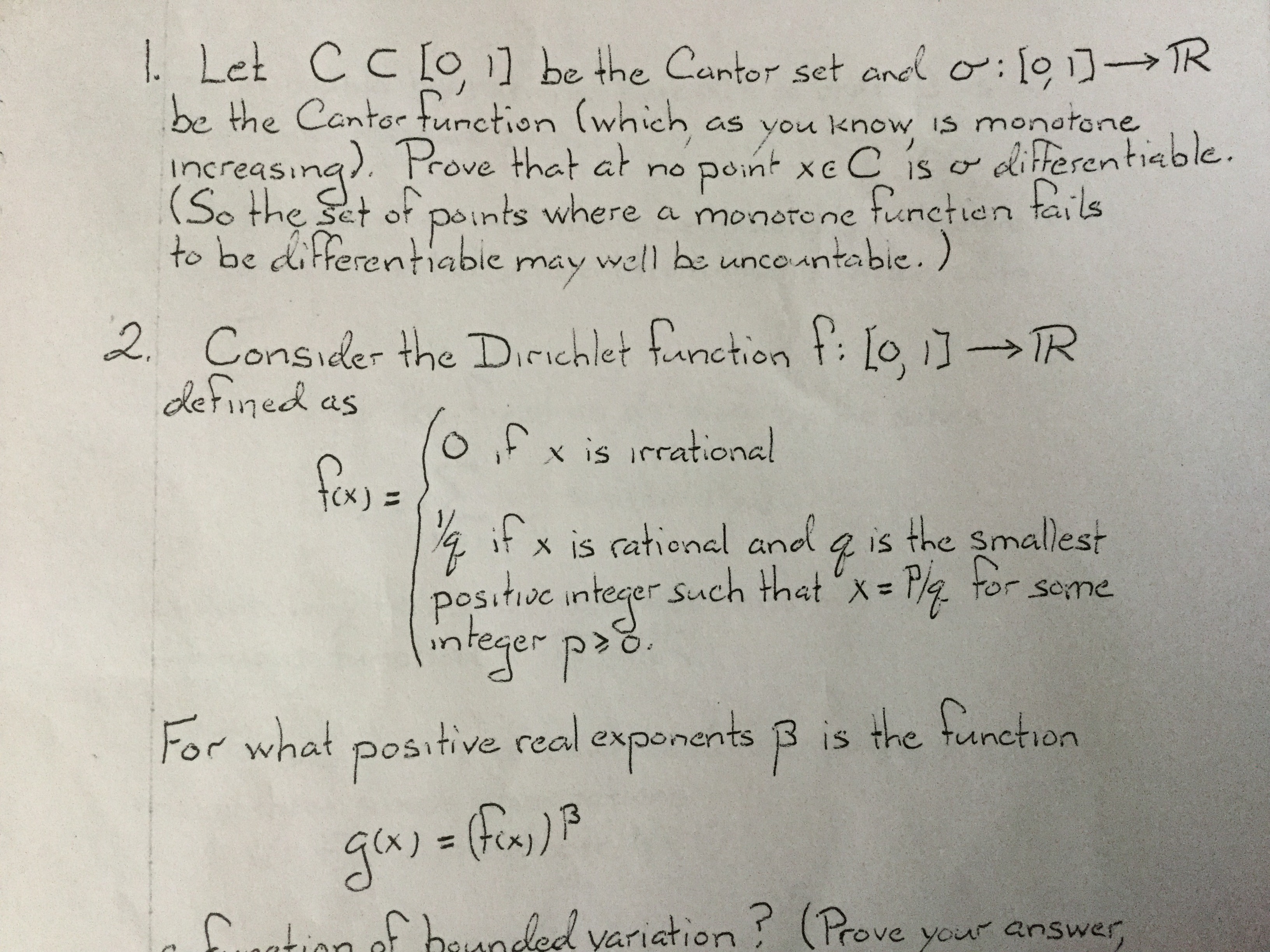 1. Let C C Lo, 1] be the Cantor set and O: [o, 1] TR be the Canto...