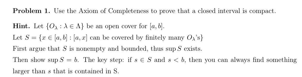 Problem 1. Use the Axiom of Completeness to prove that a closed int...