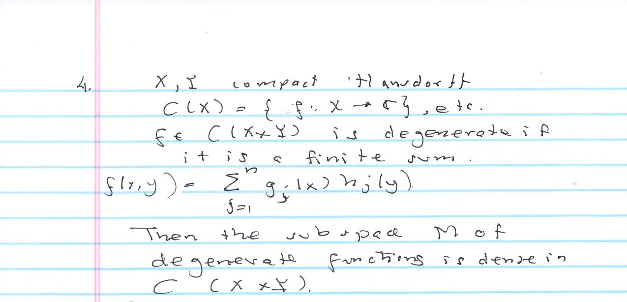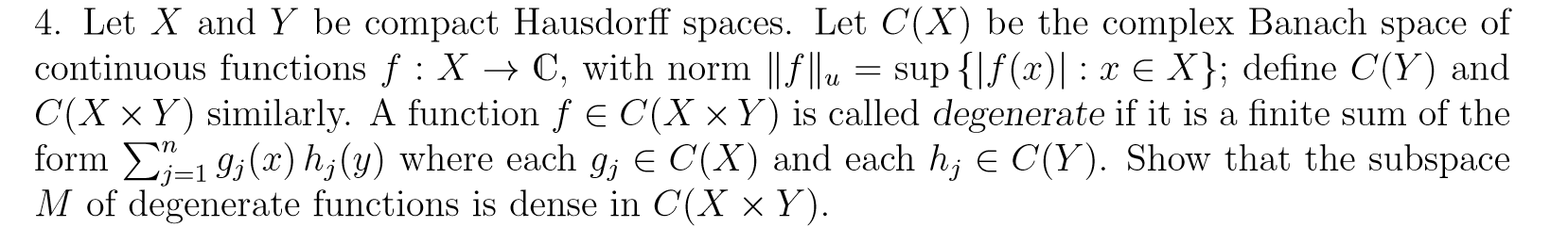 4. Let X and Y be compact Hausdorff spaces. Let C(X) be the complex...