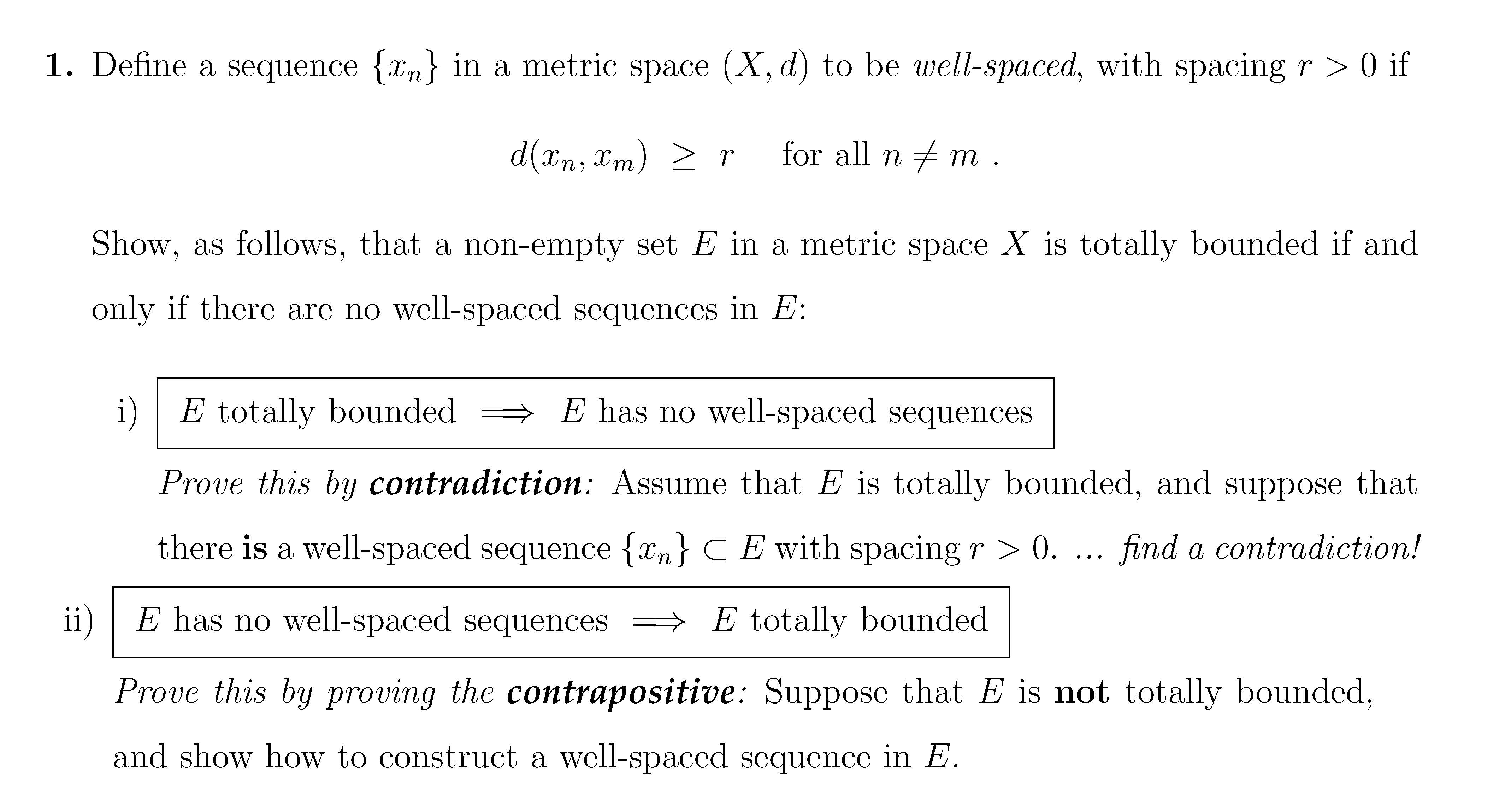 1. Define a sequence {In} in a metric space (X, d) to be well-space...