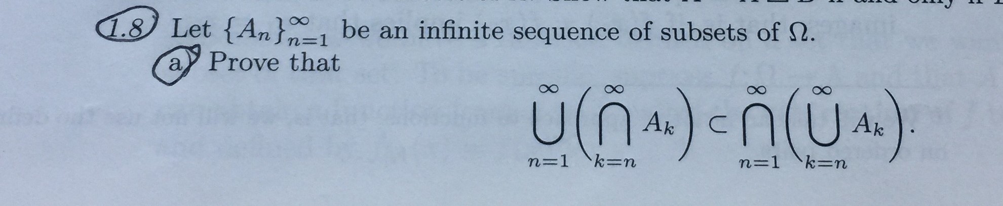 1.8 Let {An } 00 n=1 be an infinite sequence of subsets of S. a ...