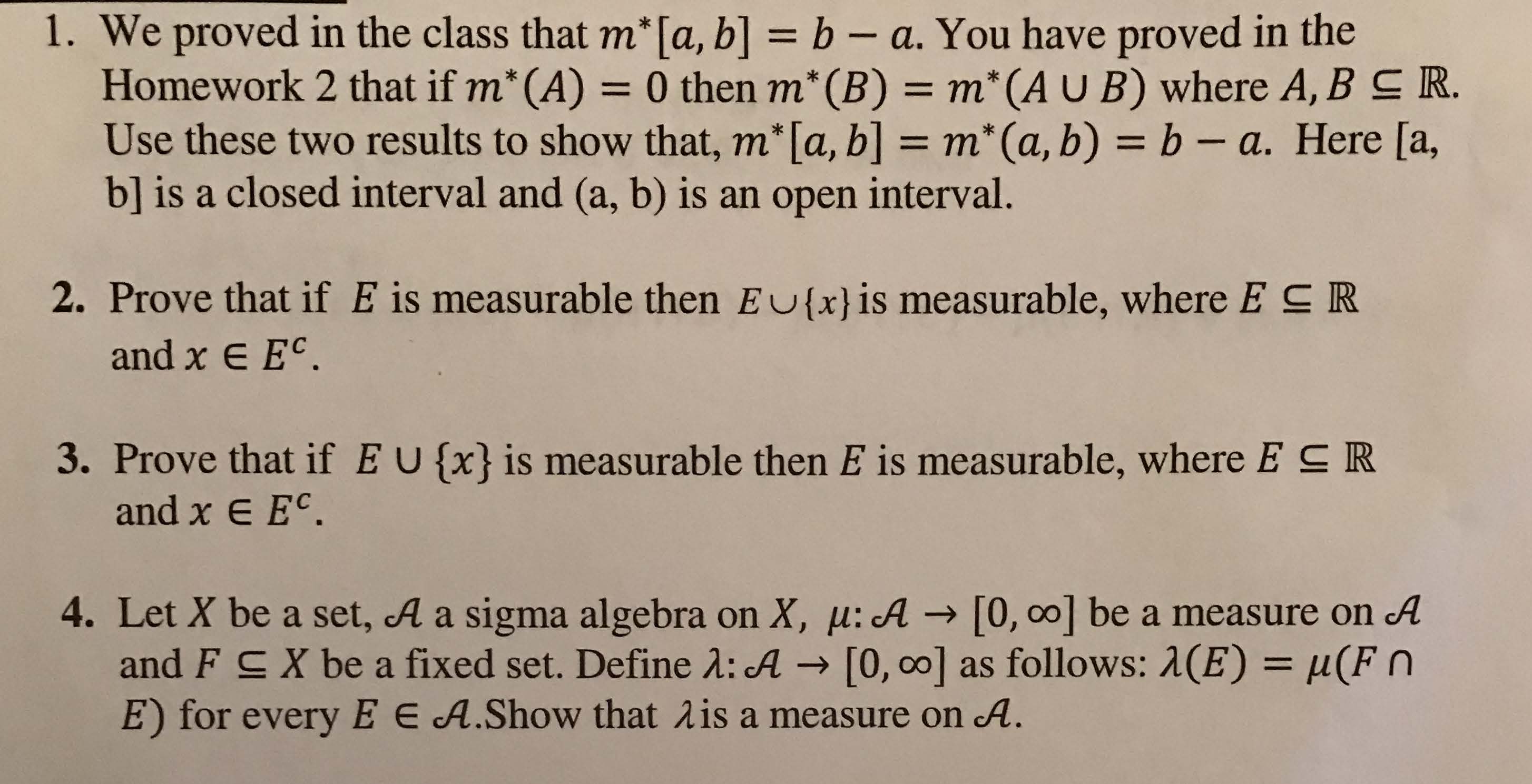 1. We proved in the class that m*[a, b] = b - a. You have proved in...