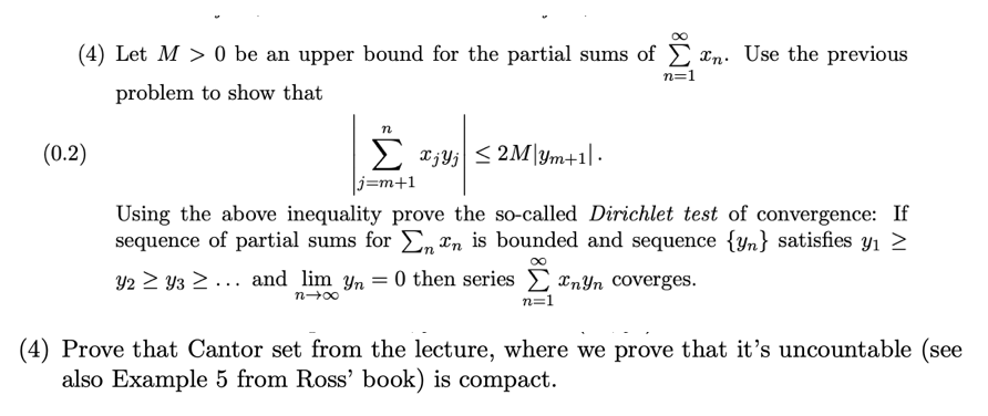 (4) Let M > 0 be an upper bound for the partial sums of Earn Use...
