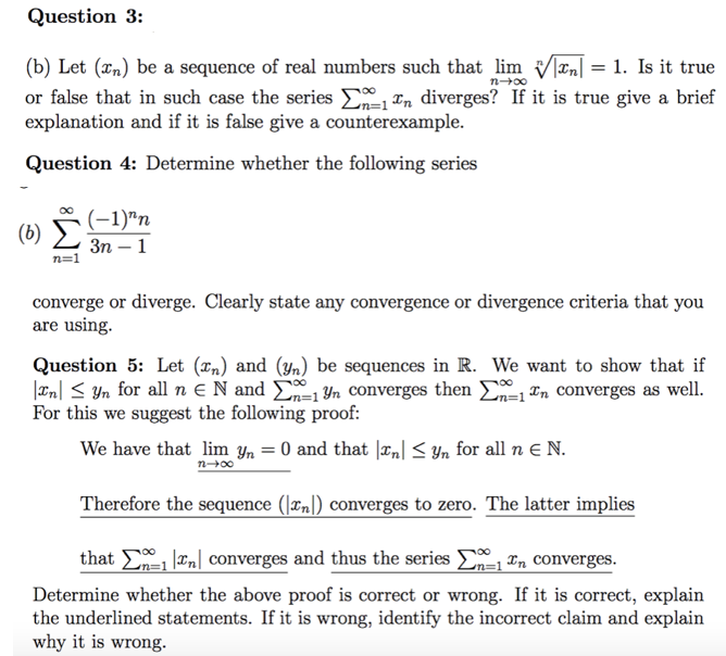 Question 3: (b) Let (xn) be a sequence of real numbers such that l...