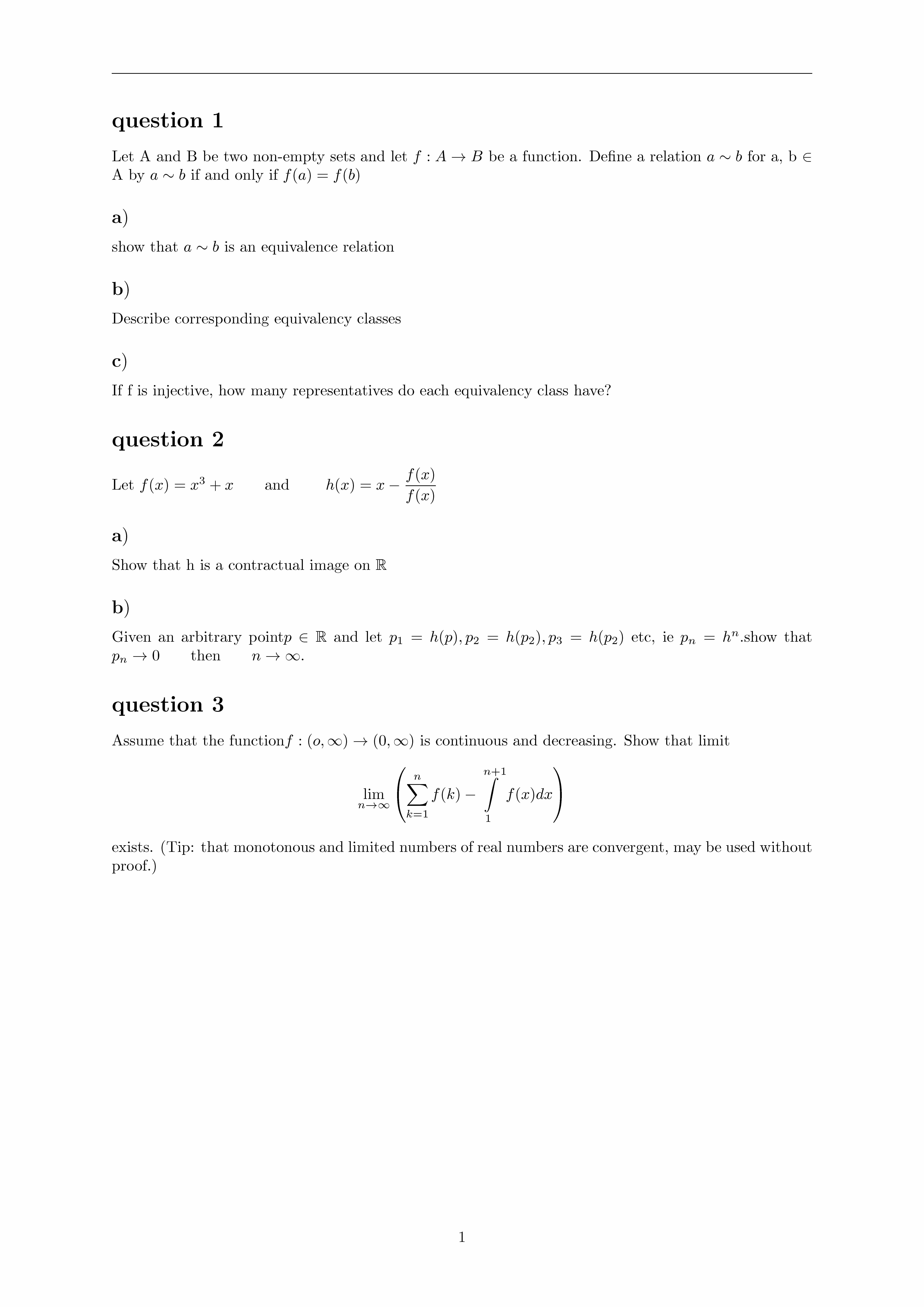 question 1 Let A and B be two mon-empty sets and let f A - B be a ...