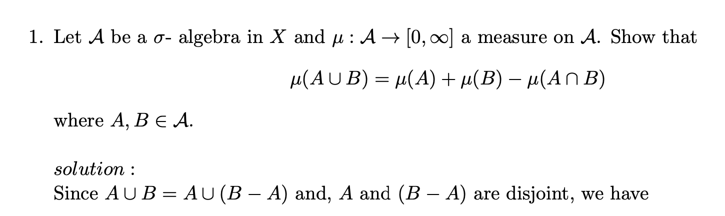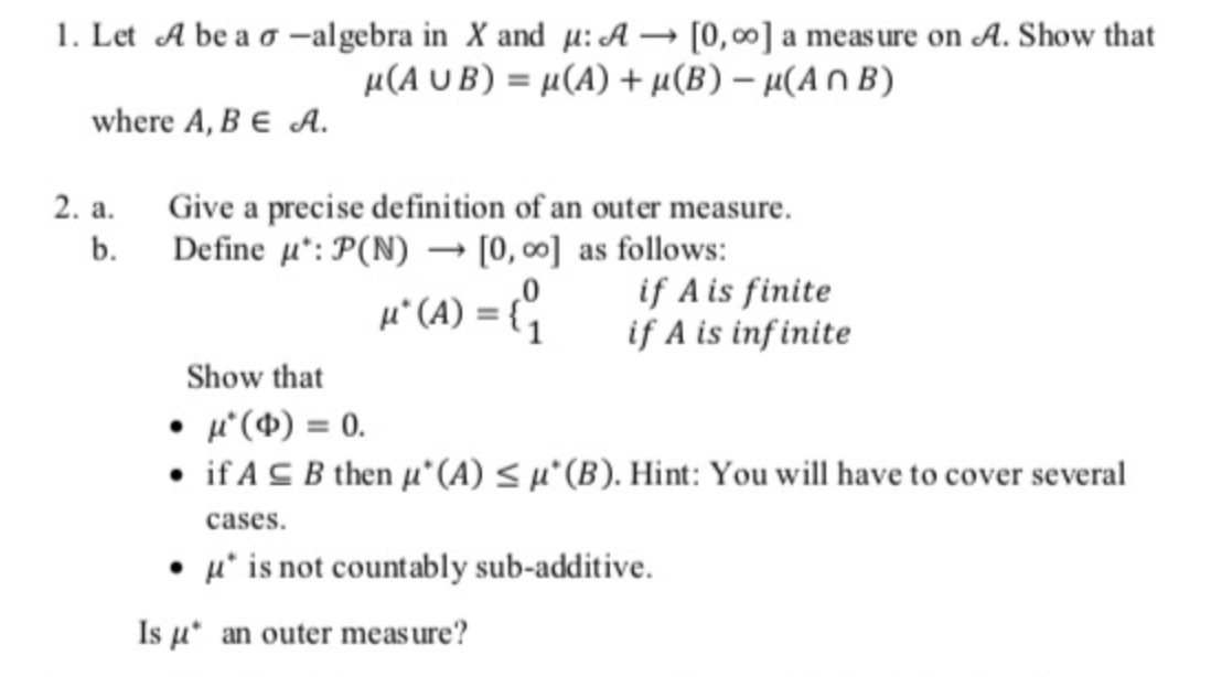 1. Let A be a o -algebra in X and H:A [0,00] a measure on A. Show t...