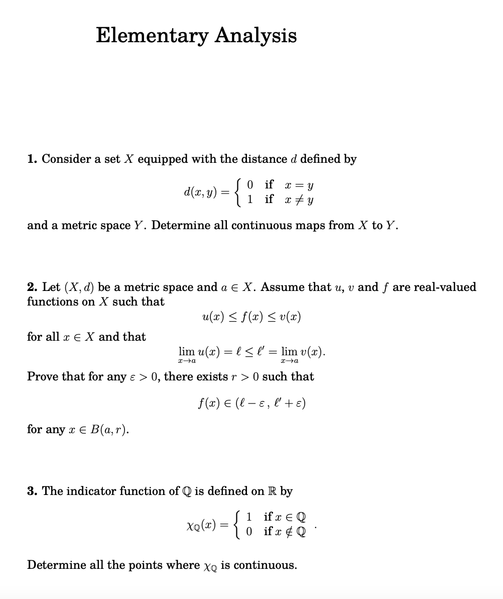 Elementary Analysis 1. Consider a set X equipped with the distance...
