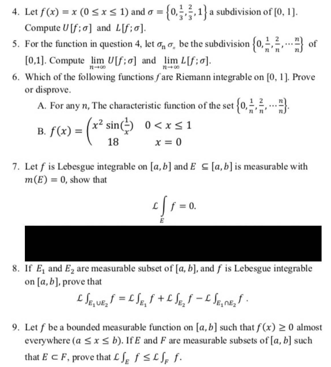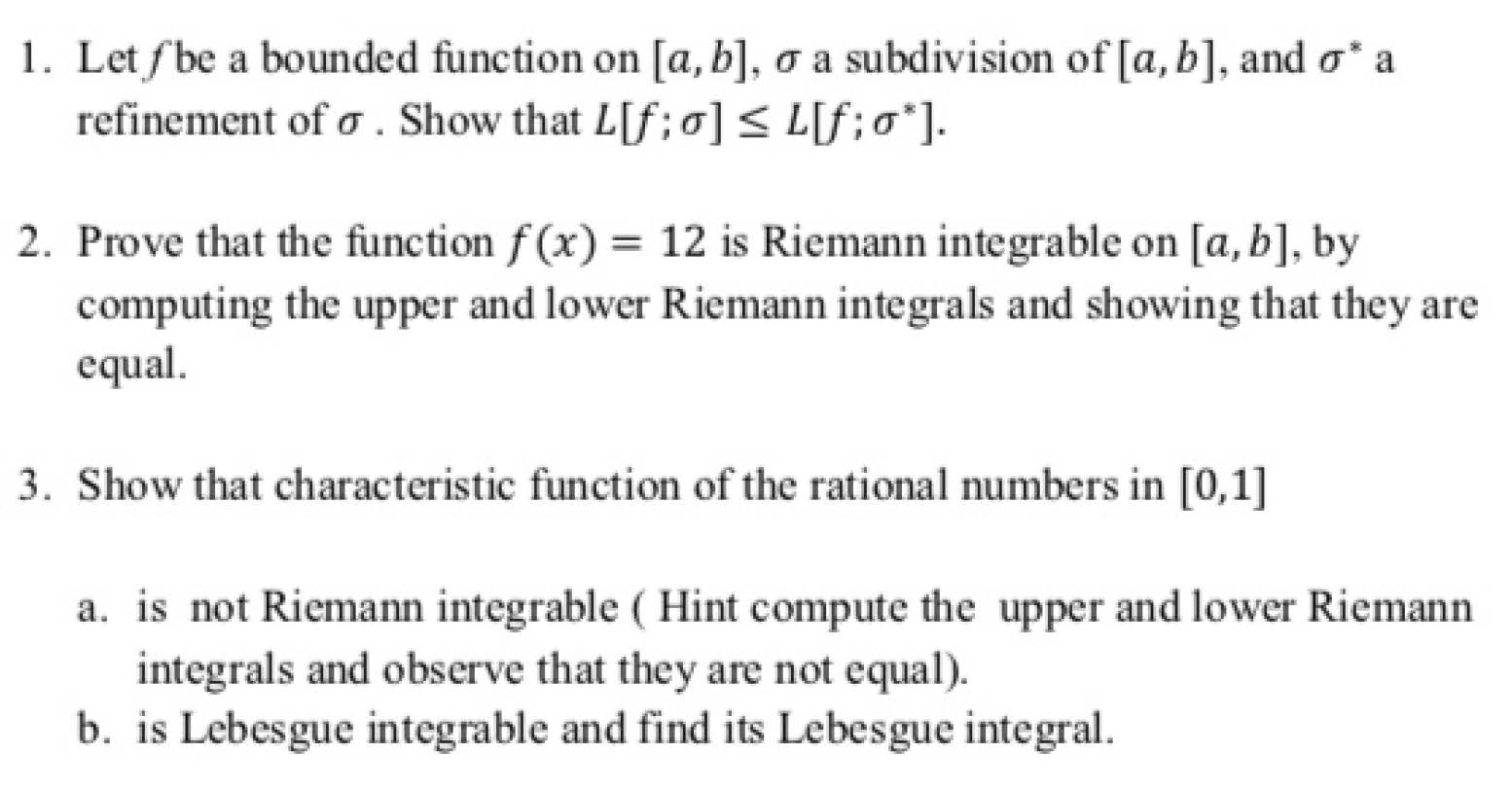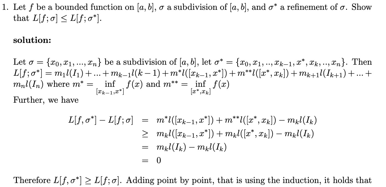 1. Let f be a bounded function on [a, b], o a subdivision of [a, b]...