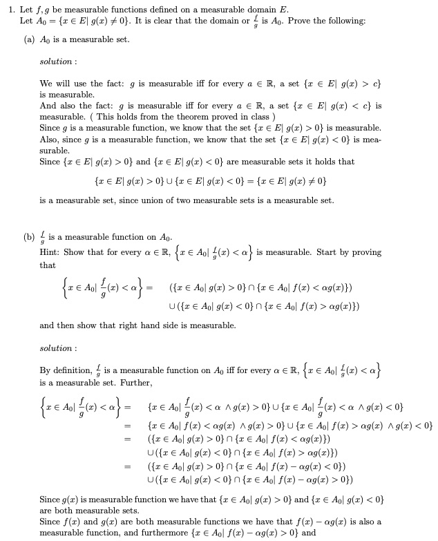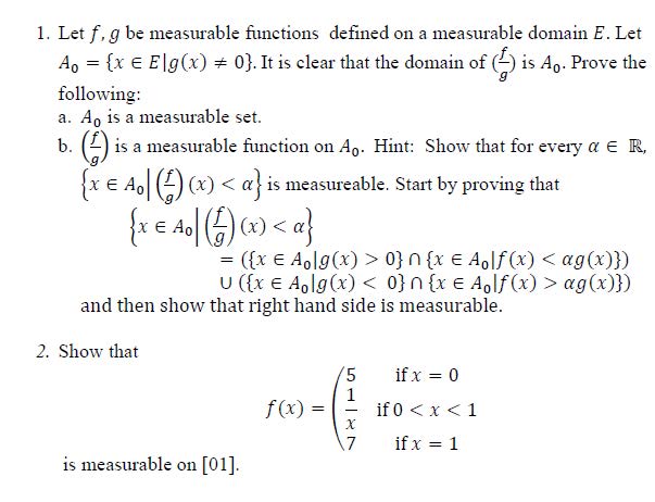 1. Let f.g be measurable functions defined on a measurable domain E...