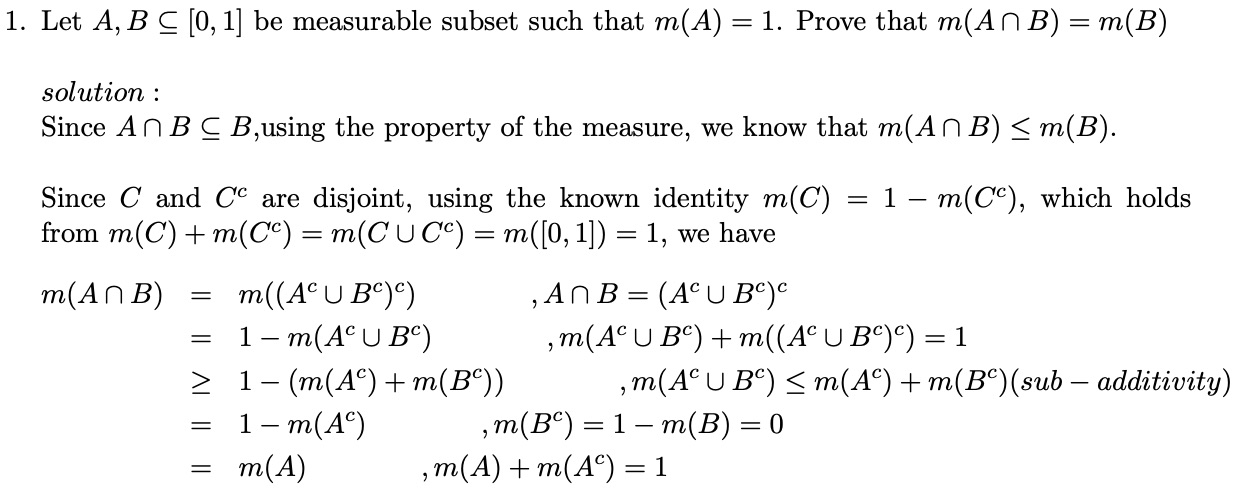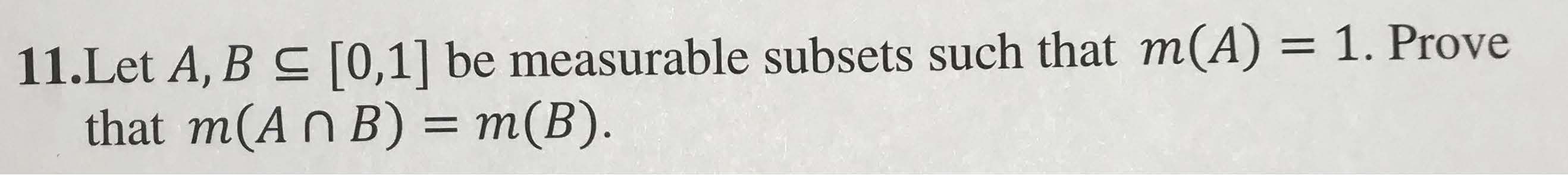 11.Let A, B U [0,1] be measurable subsets such that m(A) = 1. Prove...