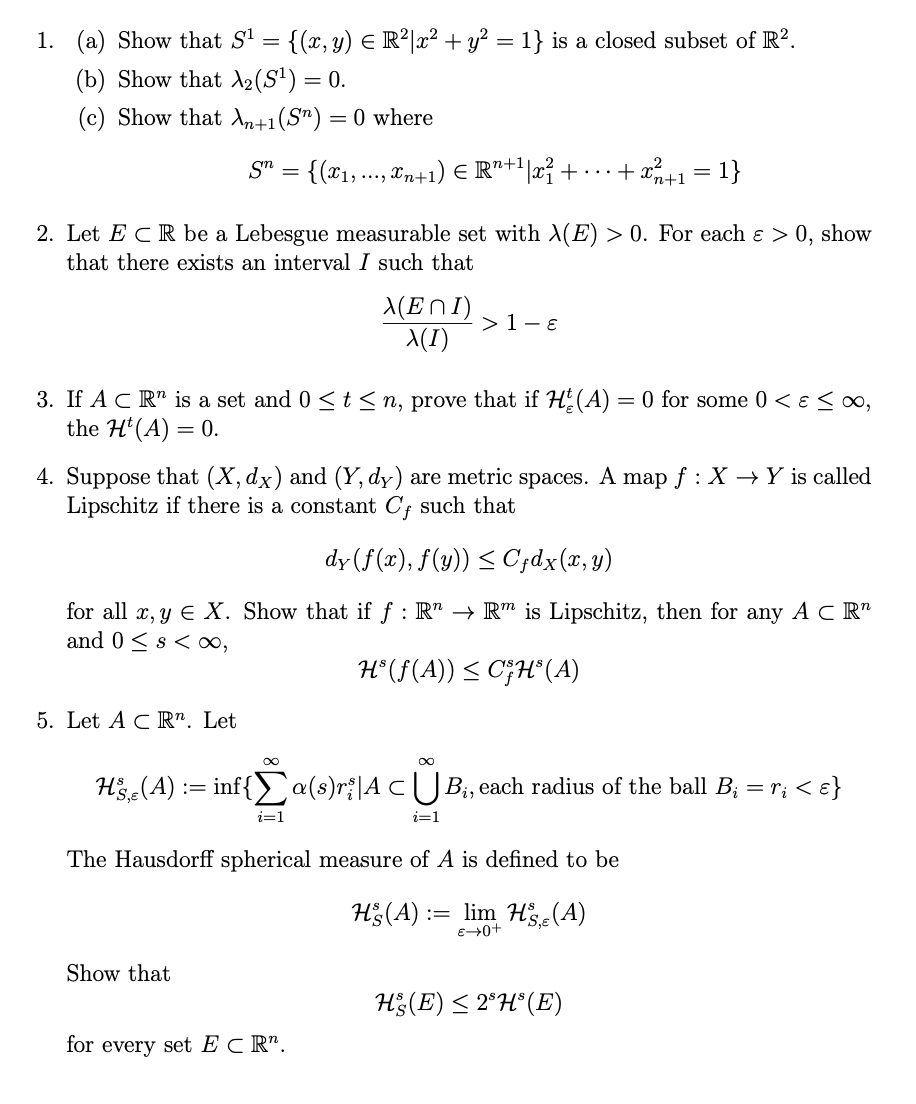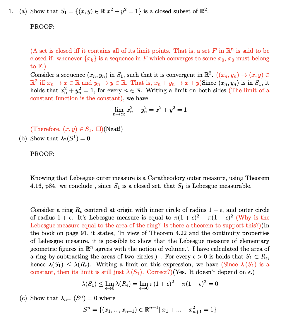1. (a) Show that subset of R2. (b) Show that 12(S1) = 0. (c) Show...