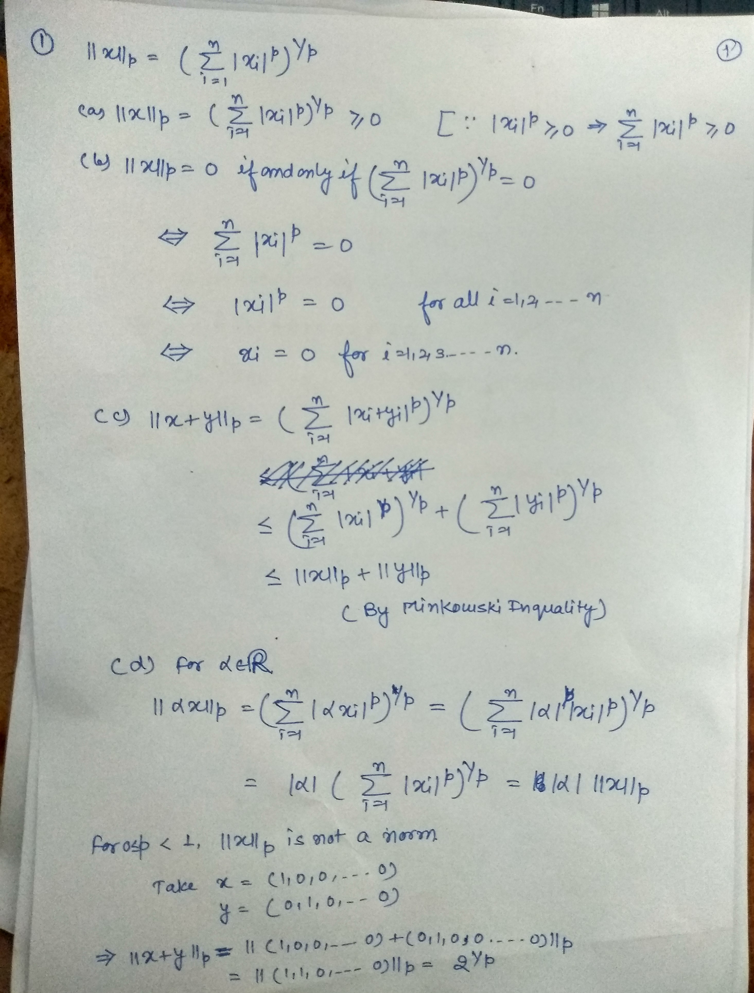 1. Prove that = p is a norm on Rn for p € [1,00), but is not a no...
