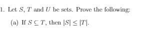 1. Let S, T and U be sets. Prove the following: (a) If S IT T, the...