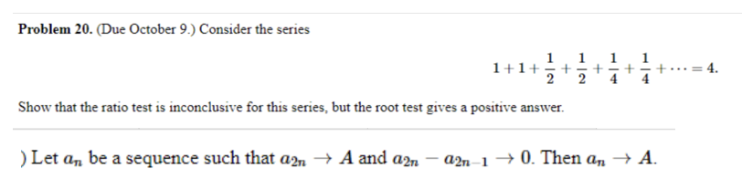 Problem 20. (Due October 9.) Consider the series 1+1+++++++++++++...
