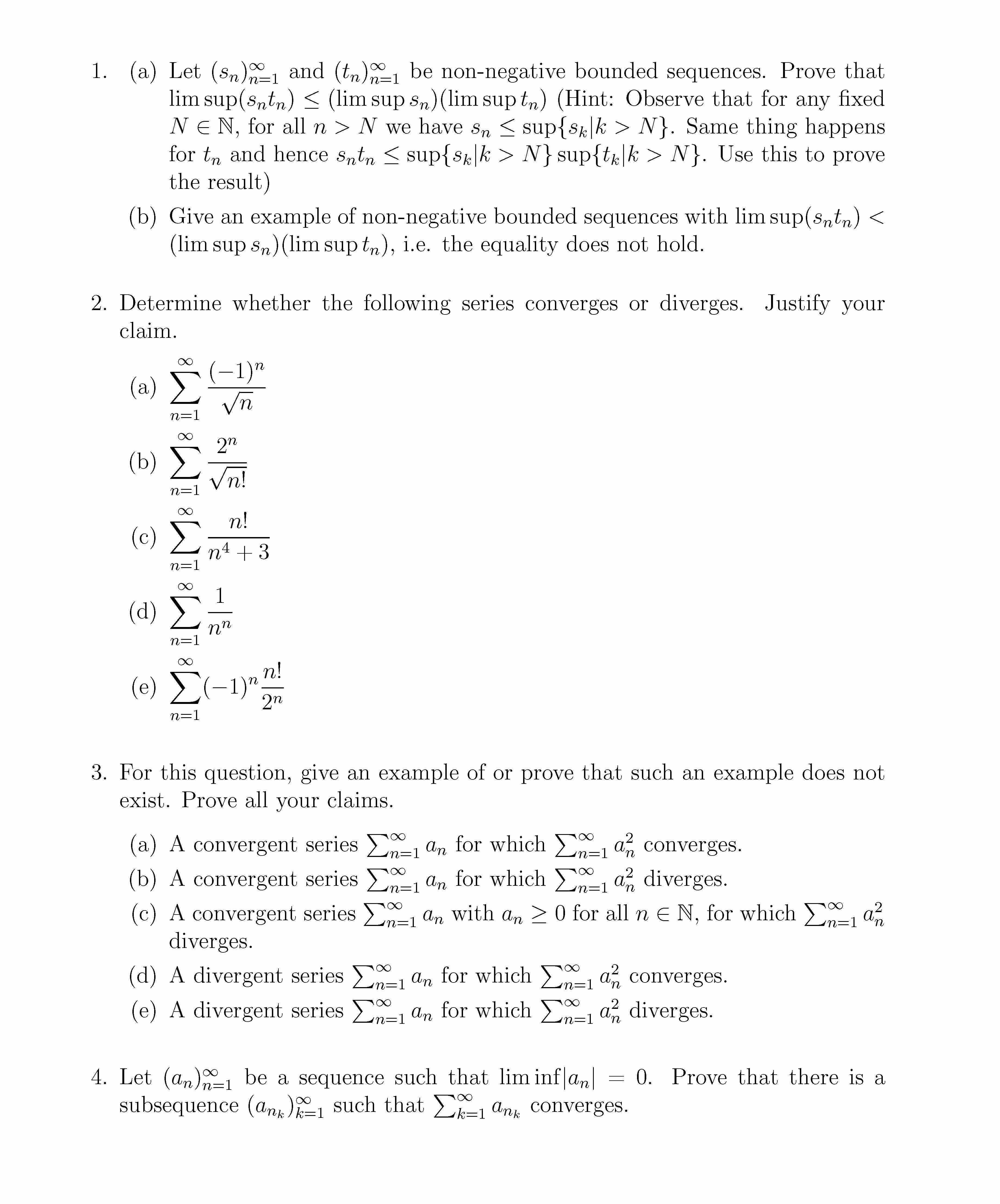 1. (a) Let (sn) ∞ n=1 and (tn) ∞ n=1 be non-negative bounde...