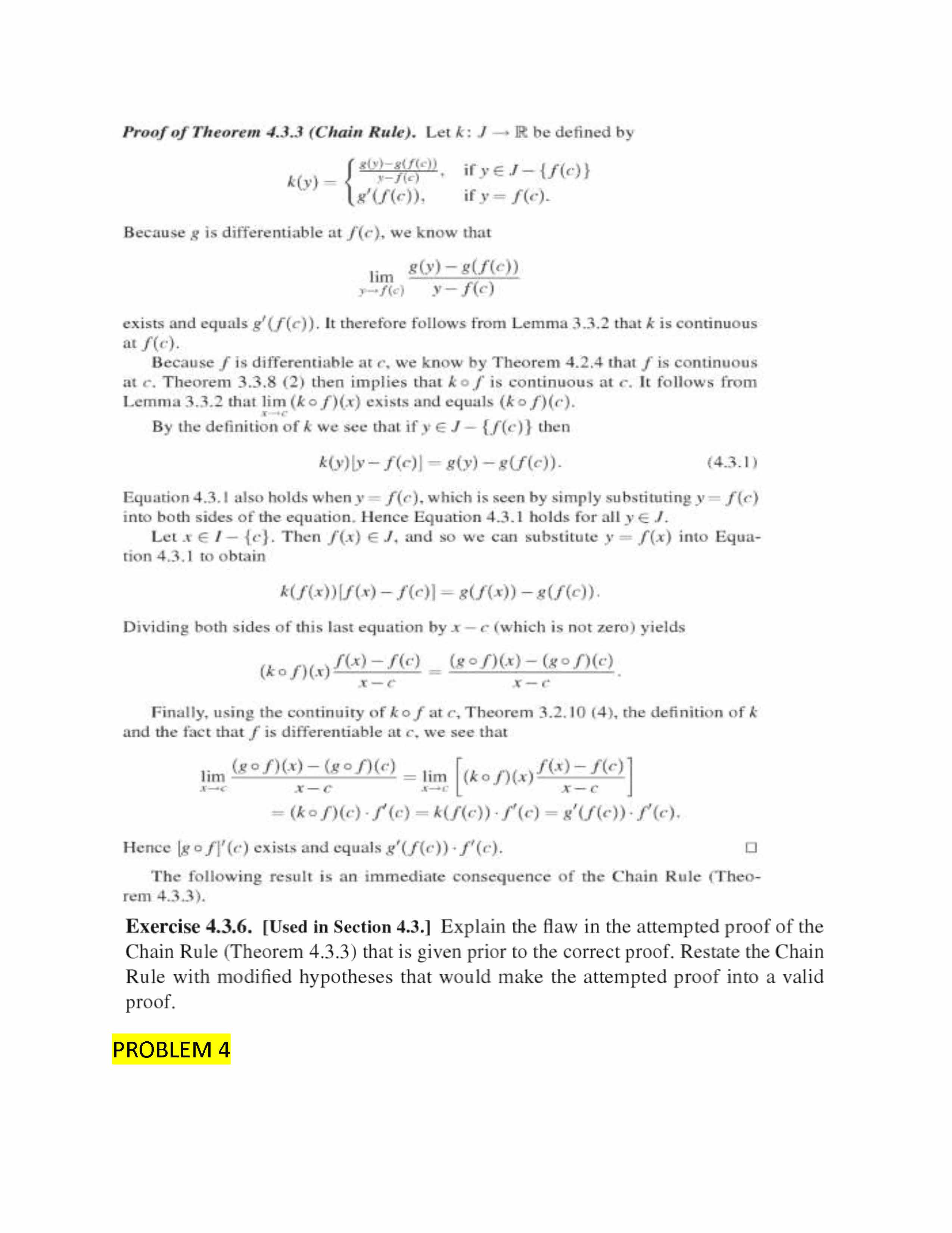 PROBLEM 1 Exercise 4.2.4. Let I C R be an open interval, let CE I...