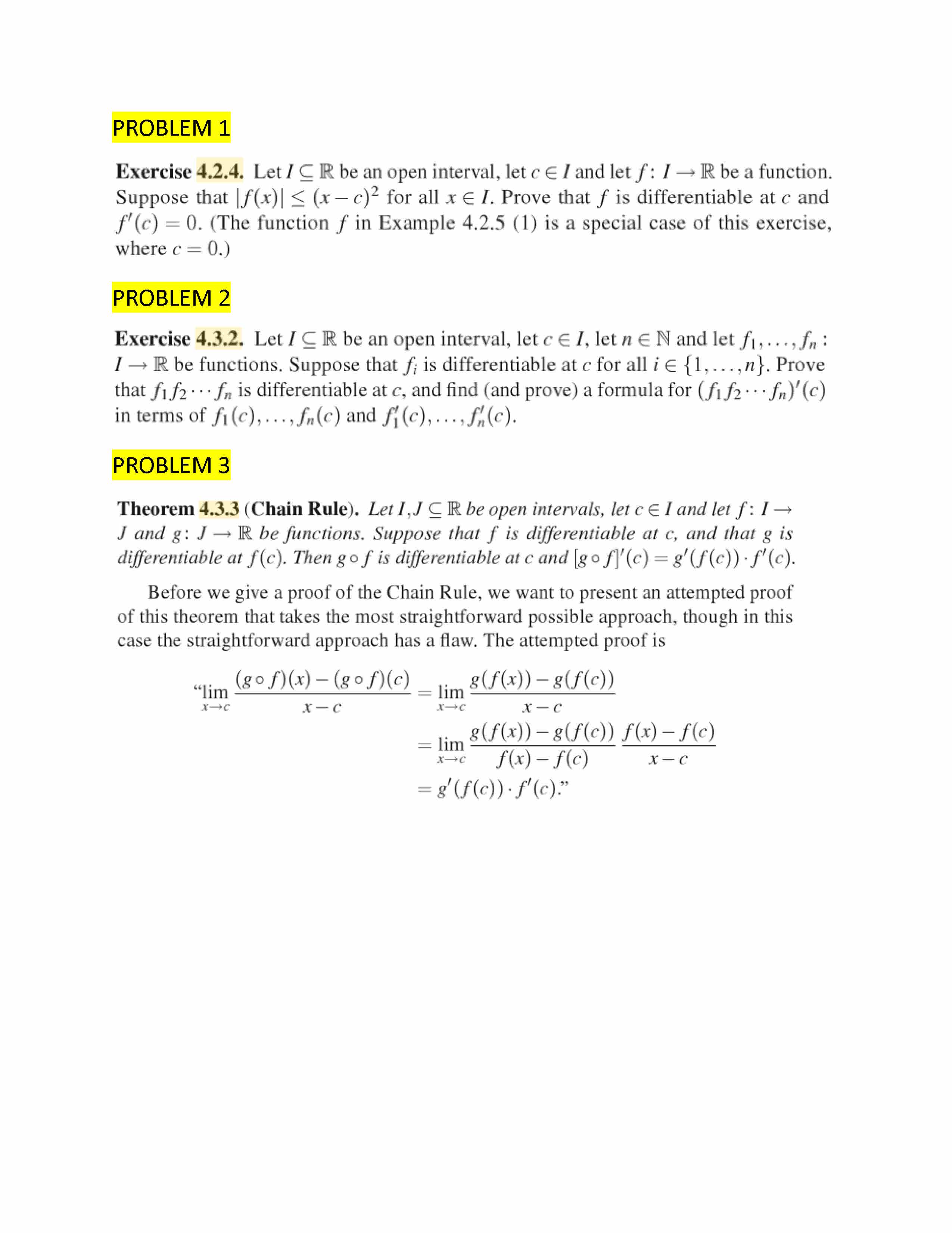 PROBLEM 1 Exercise 4.2.4. Let I C R be an open interval, let CE I ...