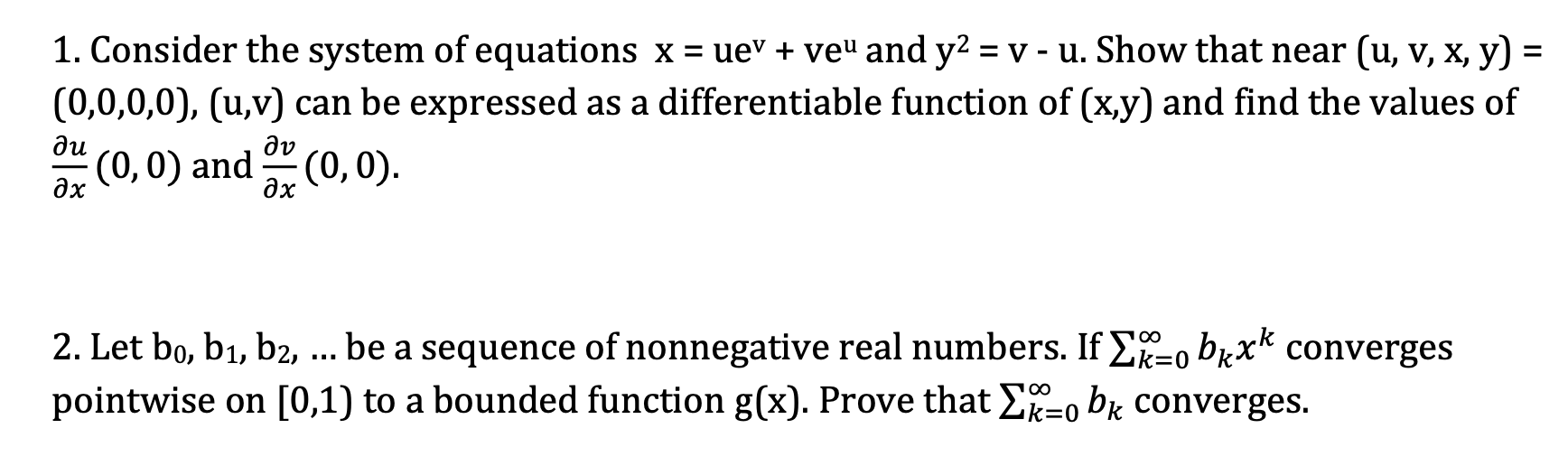 1. Consider the system of equations x = uev + veu and y2 = v - u. S...