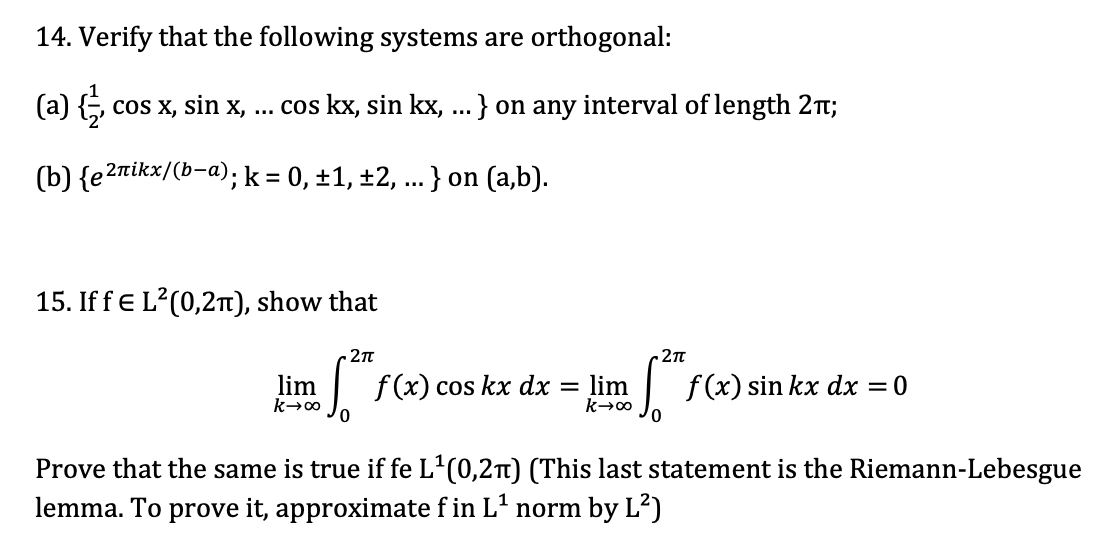 14. Verify that the following systems are orthogonal: (a) { , c...