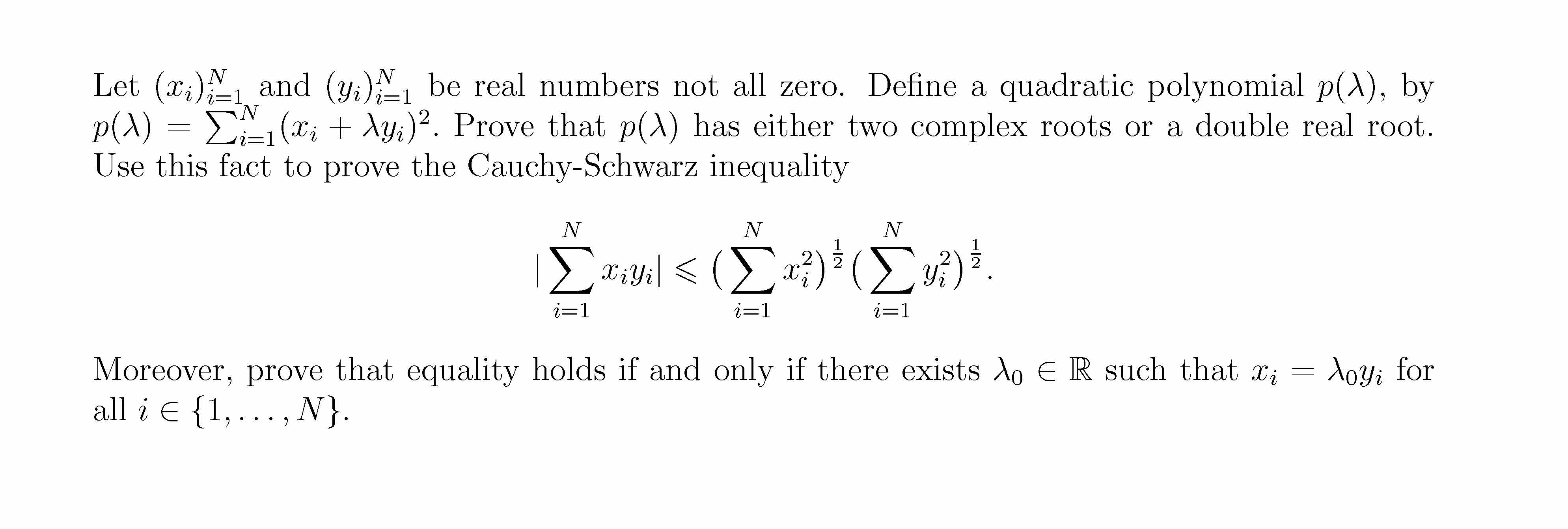 Let (xi) N i=1 and (yi) N i=1 be real numbers not all zero. Def...