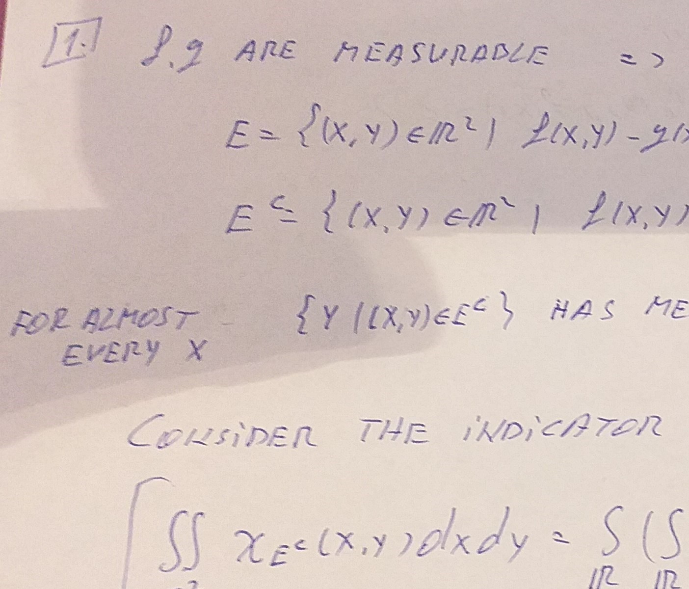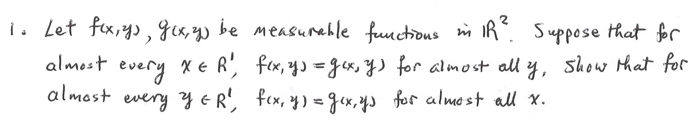 1. Let fexiys, gex,y) be measurable functions in R Suppose that for...