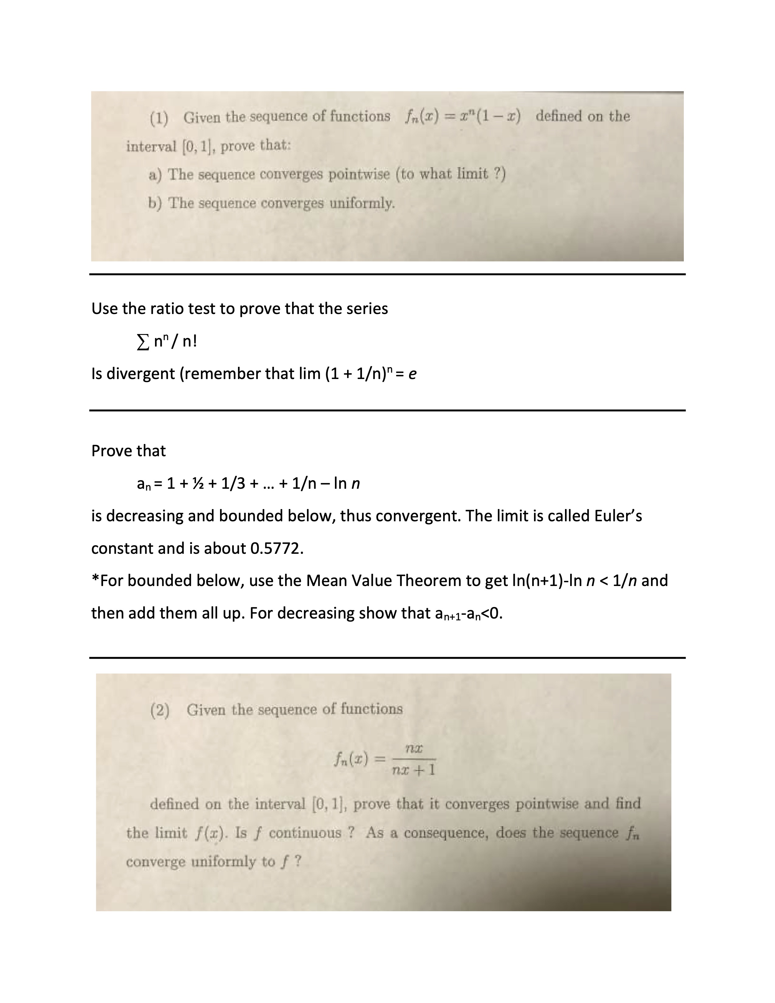 (1) Given the sequence of functions fr(x)=="(1-2) - defined on...
