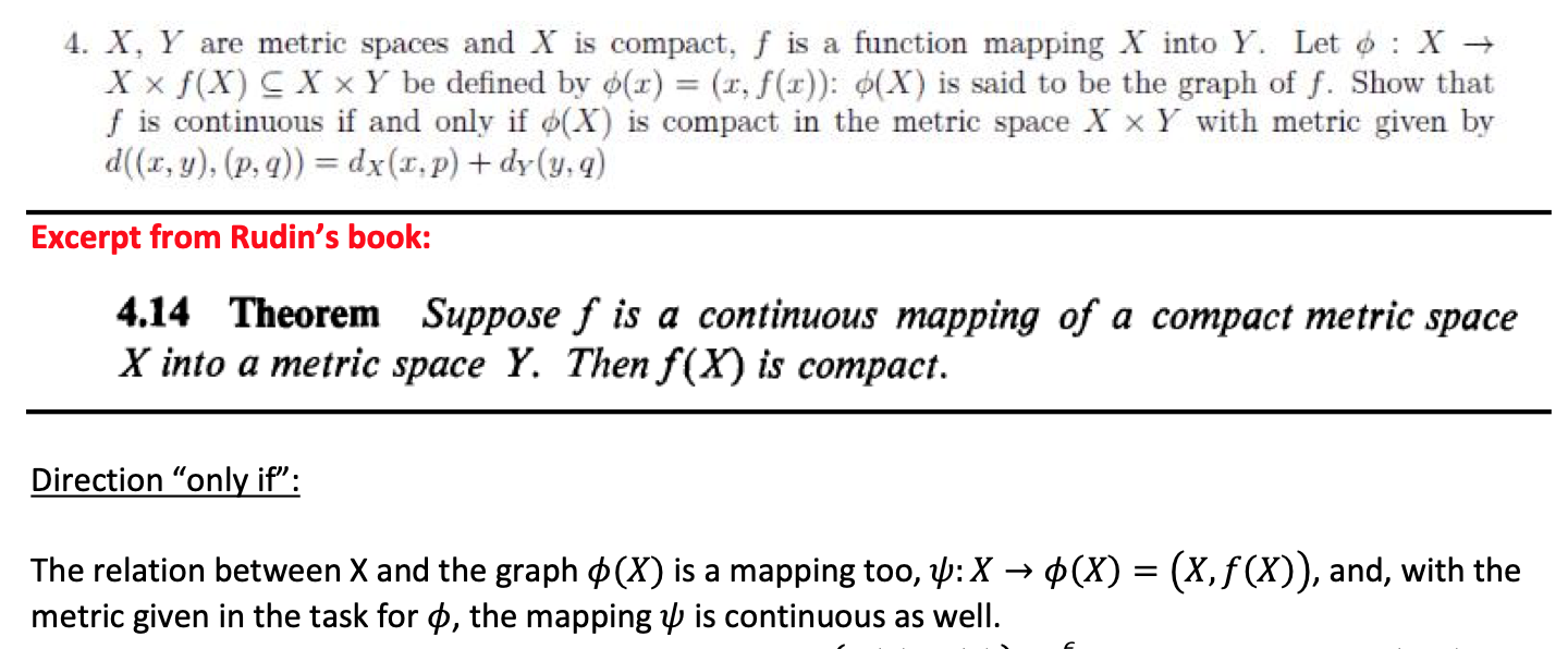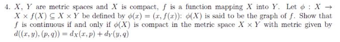 4. X, Y are metric spaces and X is compact, f is a function mappi...