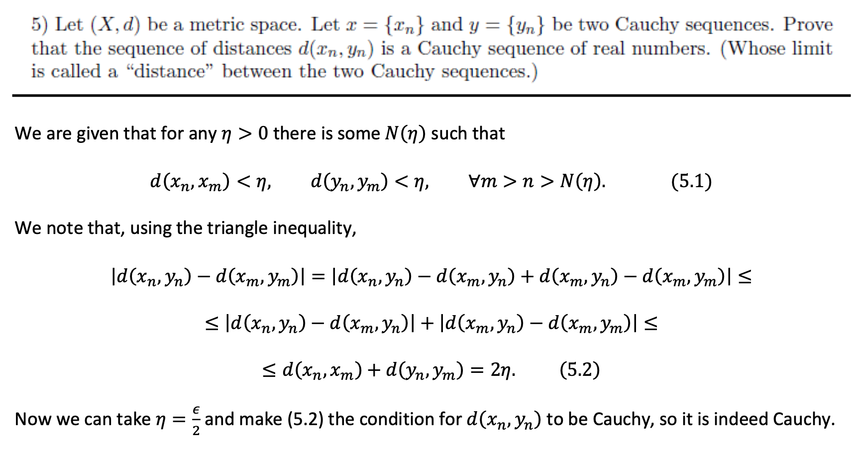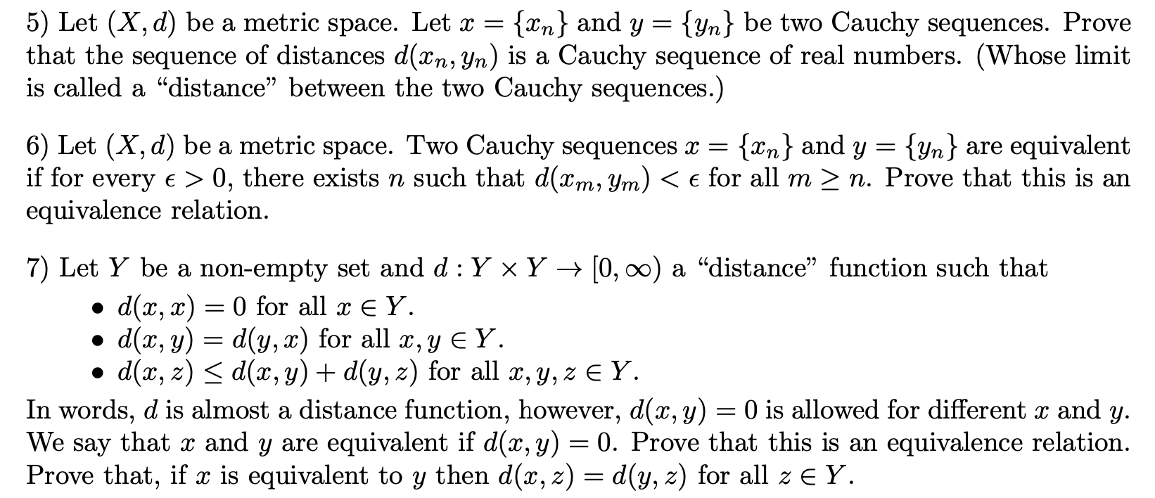 5) Let (X, d) be a metric space. Let x = {xn} and y = {yn} be two C...