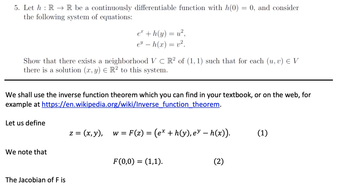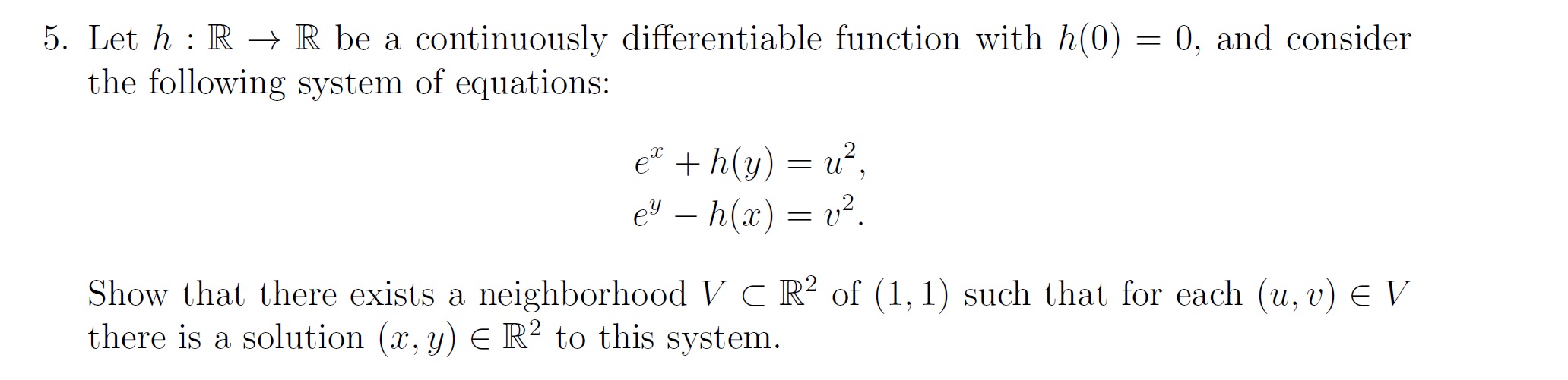 5. Let h : R R be a continuously differentiable function with h(0)...