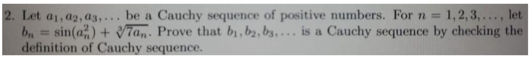 2. Let a1, be a Cauchy sequence of positive numbers. For 72 = 1,2,3...