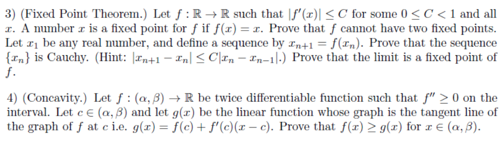 3) (Fixed Point Theorem.) Let f : R R such that If' (x) all x. A n...