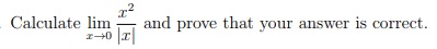 Calculate lim and prove that your answer is correct. x->0 .