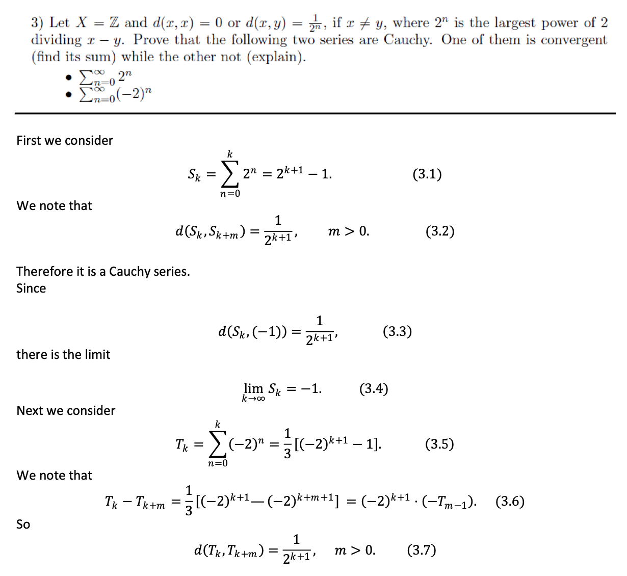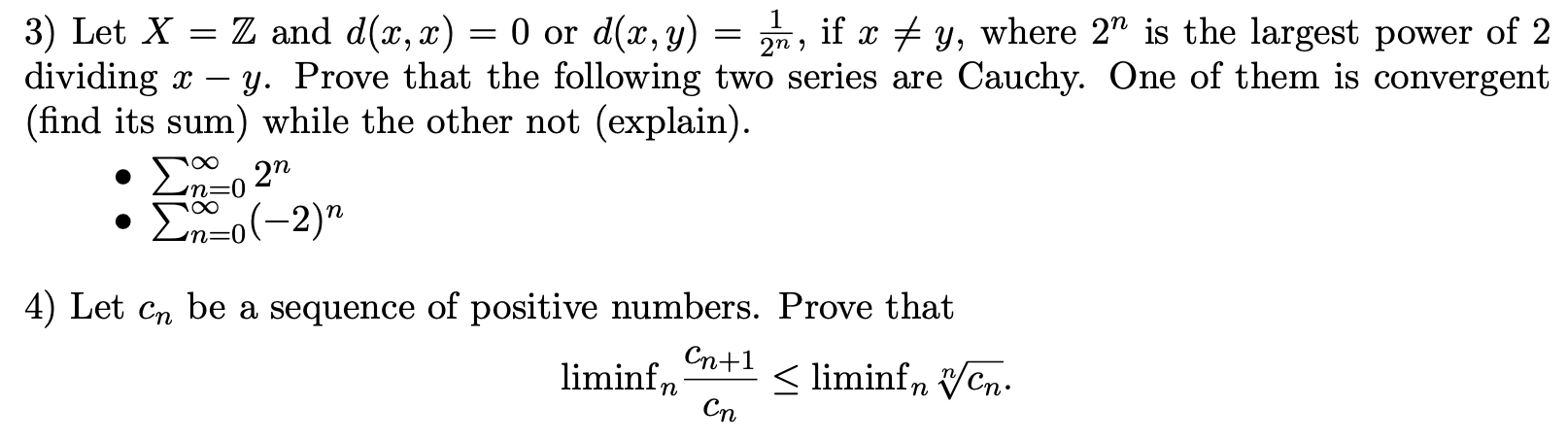 3) Let X = Z and d(x,x) = 0 or d(x,y) = 2n, 1/2/2 1 if x # y, where...