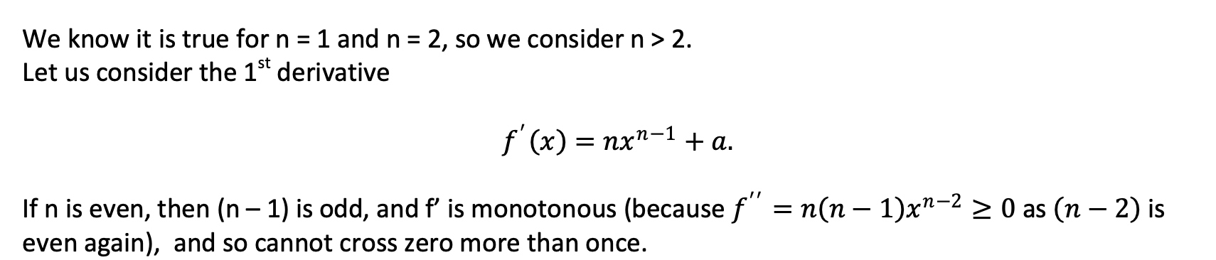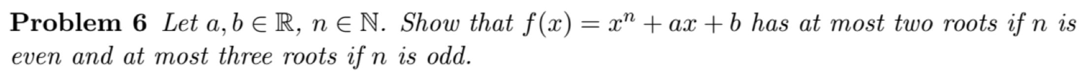 Problem 6 Let a, b E R, n € N. Show that f(x) = xn + a.x + b ...