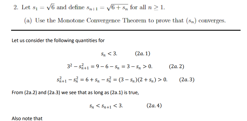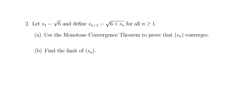 2. Let S1 = v6 and define Snil = 1/6 + Sn for all n > 1. (a) ...