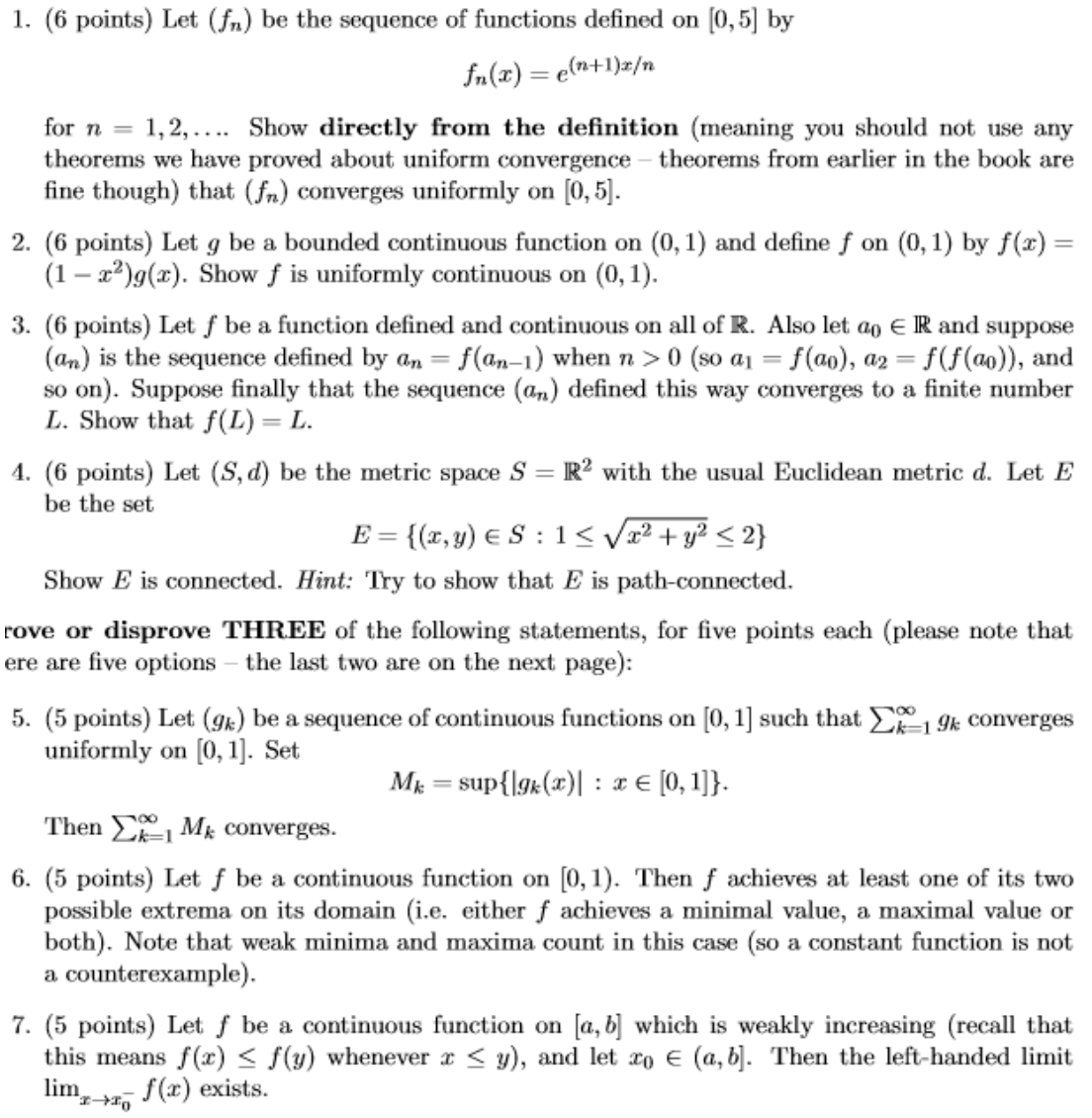 1. (6 points) Let (fn) be the sequence of functions defined on [0,5...