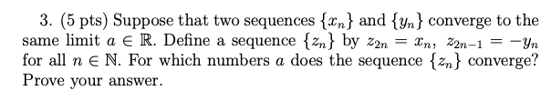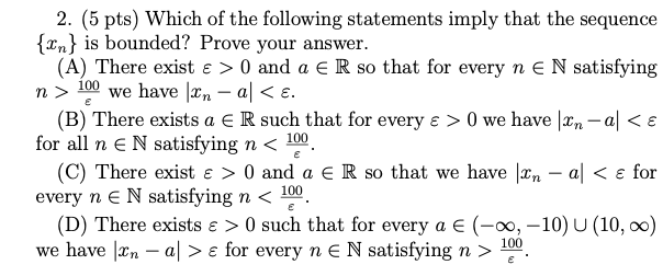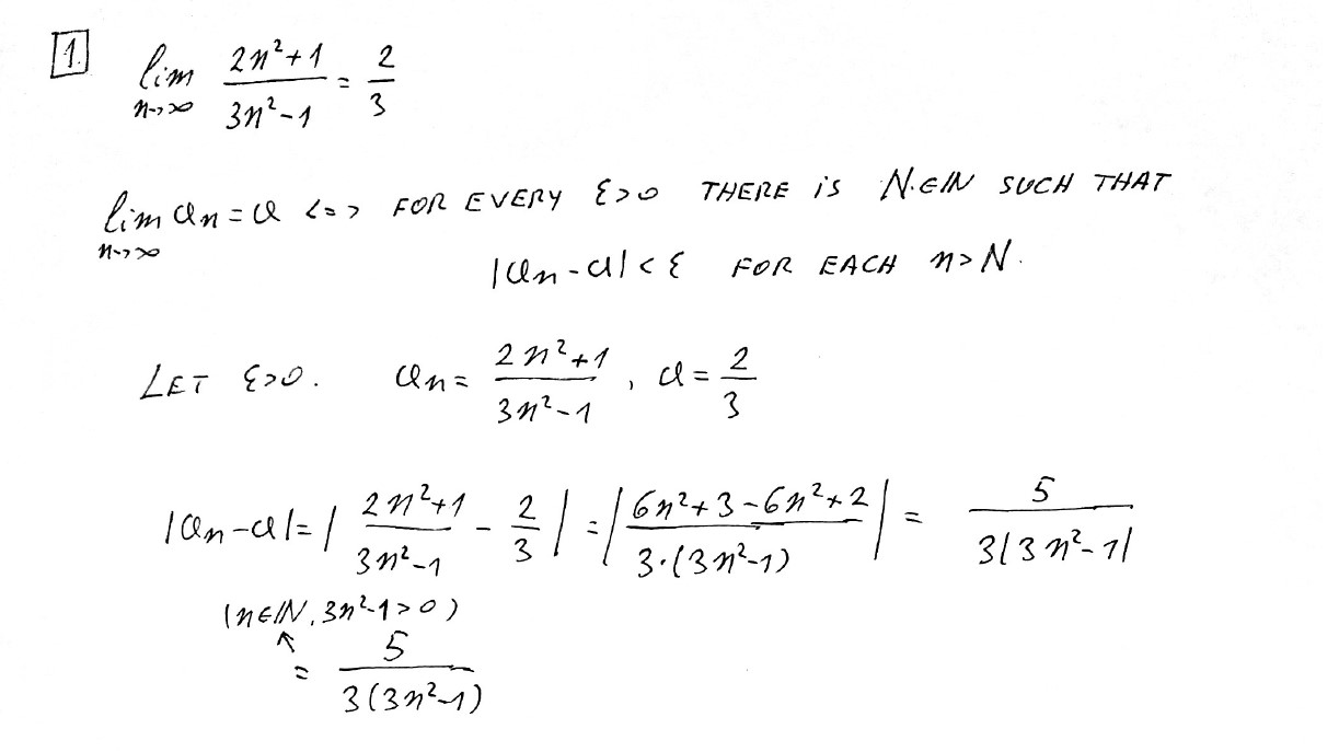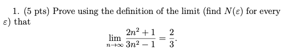 1. (5 pts) Prove using the definition of the limit (find N(e) for e...