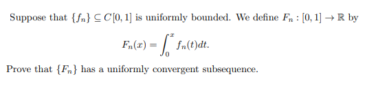 Suppose that {fn} C C[0,1 is uniformly bounded. We define Fn : [0,1...