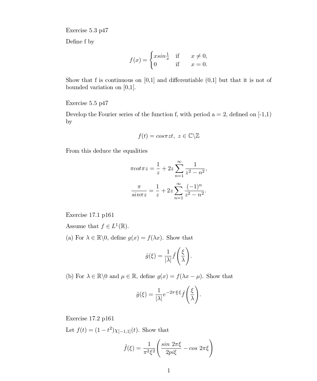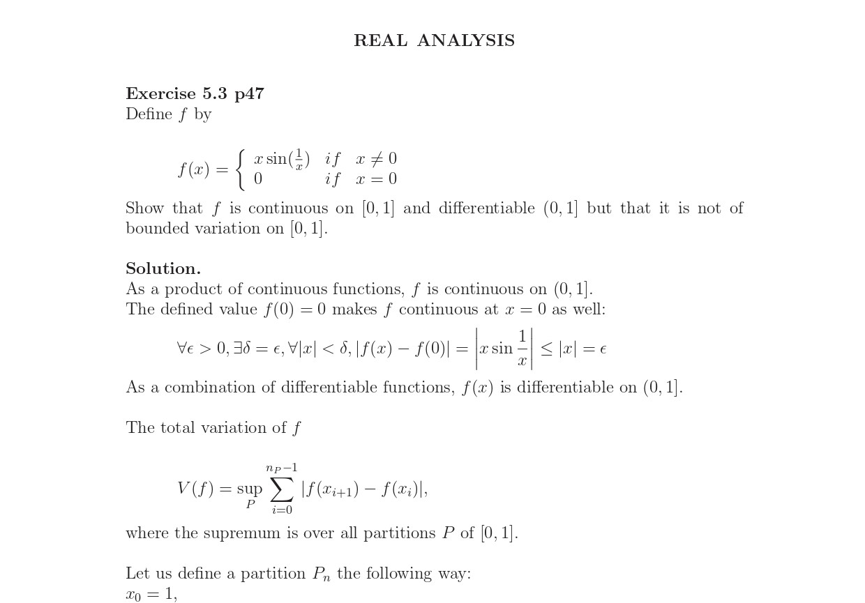 Exercise 5.3 p47 Define f by x=0. Show that f is continuous on [...