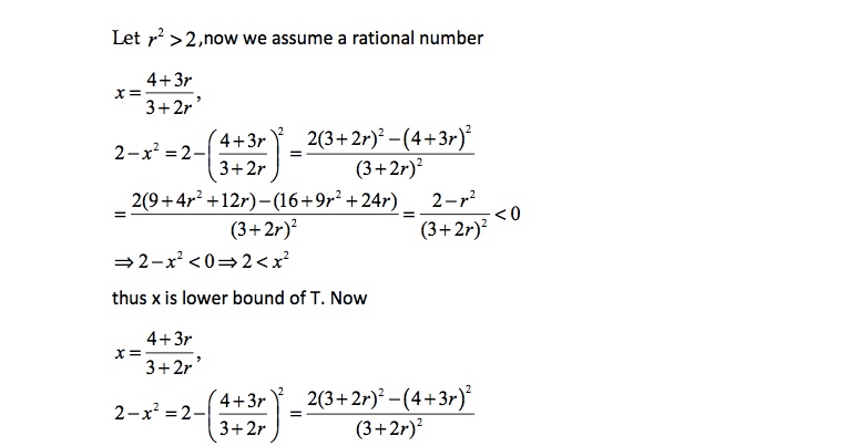 Let T={x Ꞓ Q I x > 0 and x² >2} Prove that if T = ...