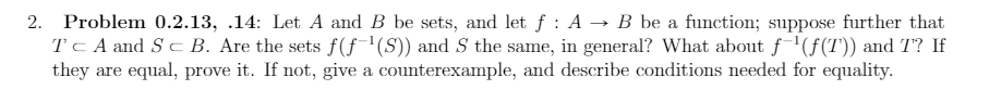 2. Problem 0.2.13, .14: Let A and B be sets, and let f : A -> B...