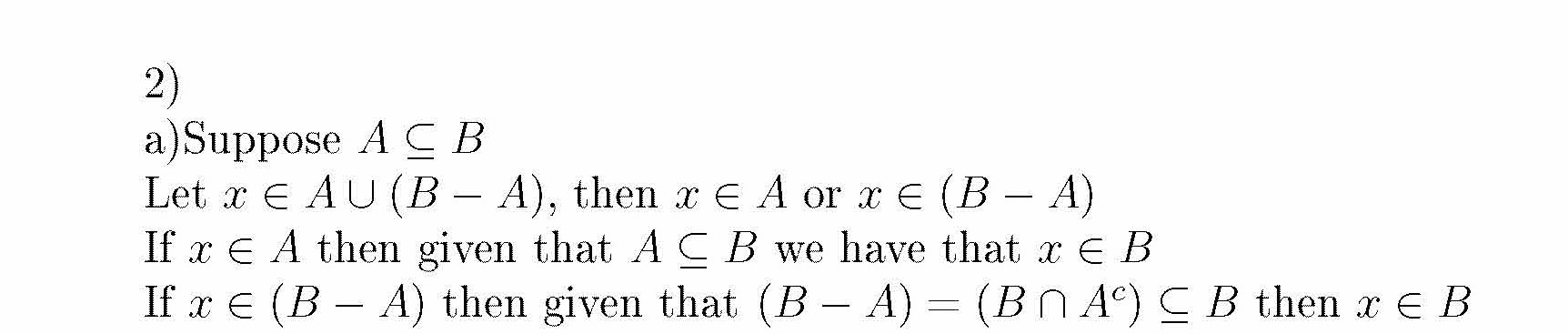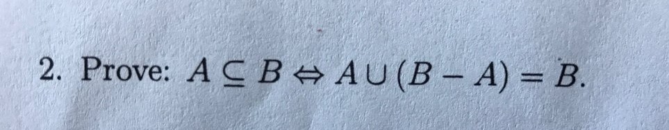 2. Prove: AC BS AU(B-—A)=B.