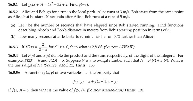 Exercises 16.5.1 Let g(2x + = - 3x + 2. Find g(-3). 16.5.2 Alice...