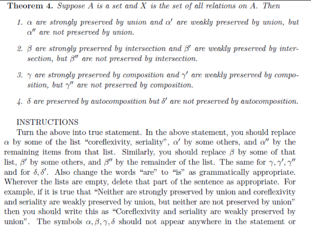 Theorem 4. Suppose A is a set and X is the set of all relations on ...
