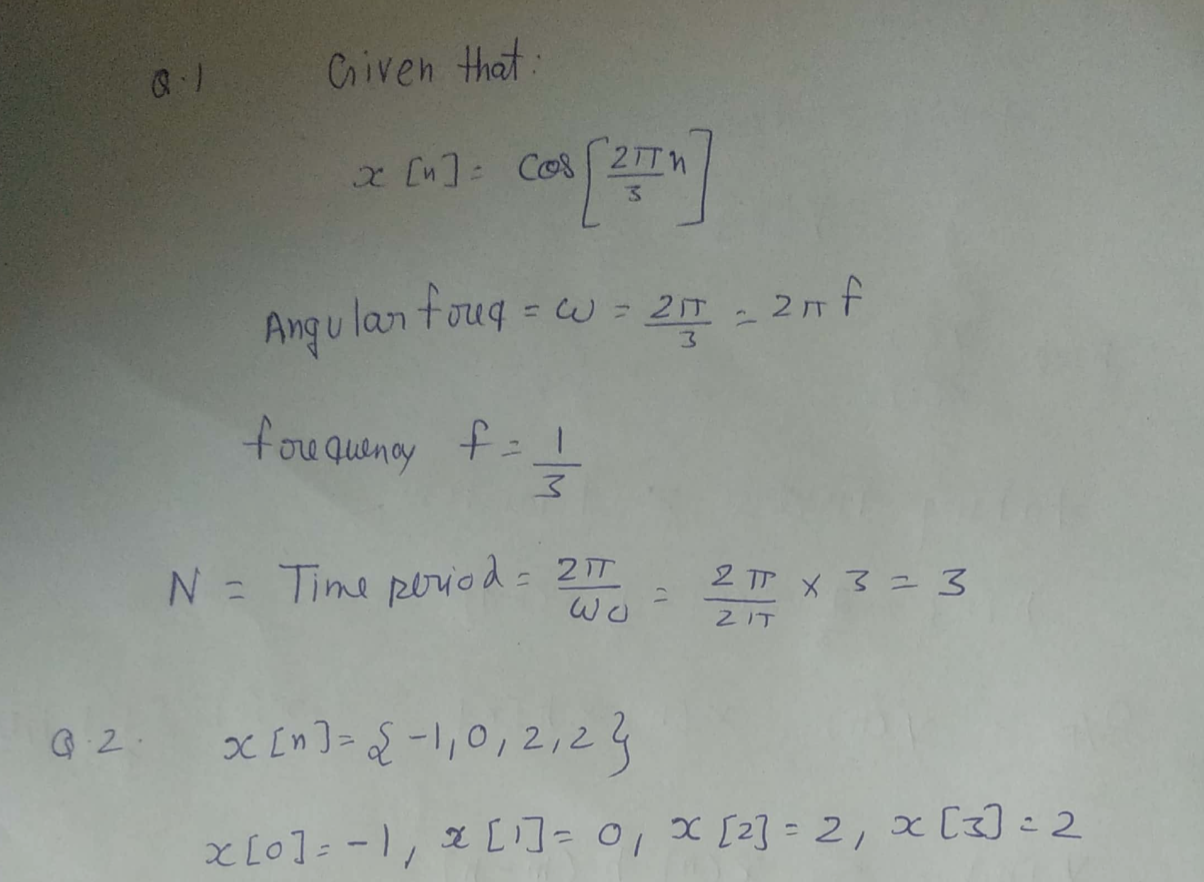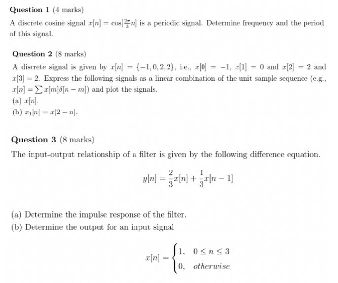 Question 1 (4 marks) A discrete cosine signal x[n] = is a periodic...