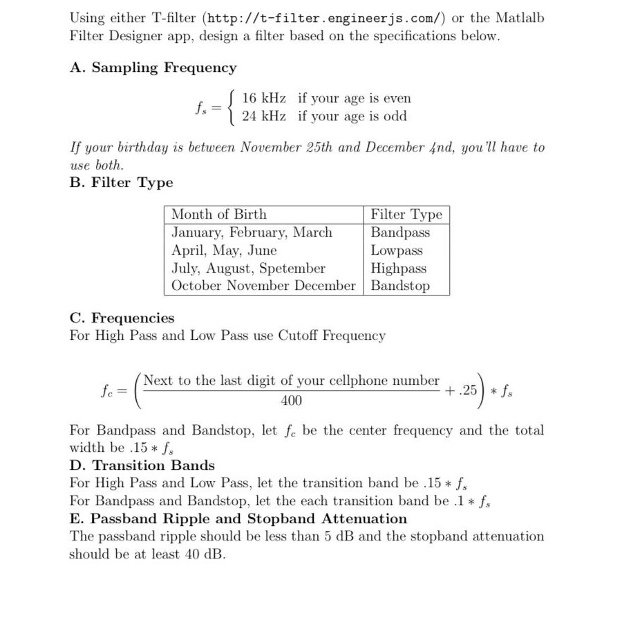 Using either T-filter (http://t-filter.engineerjs.com/or the Matlal...