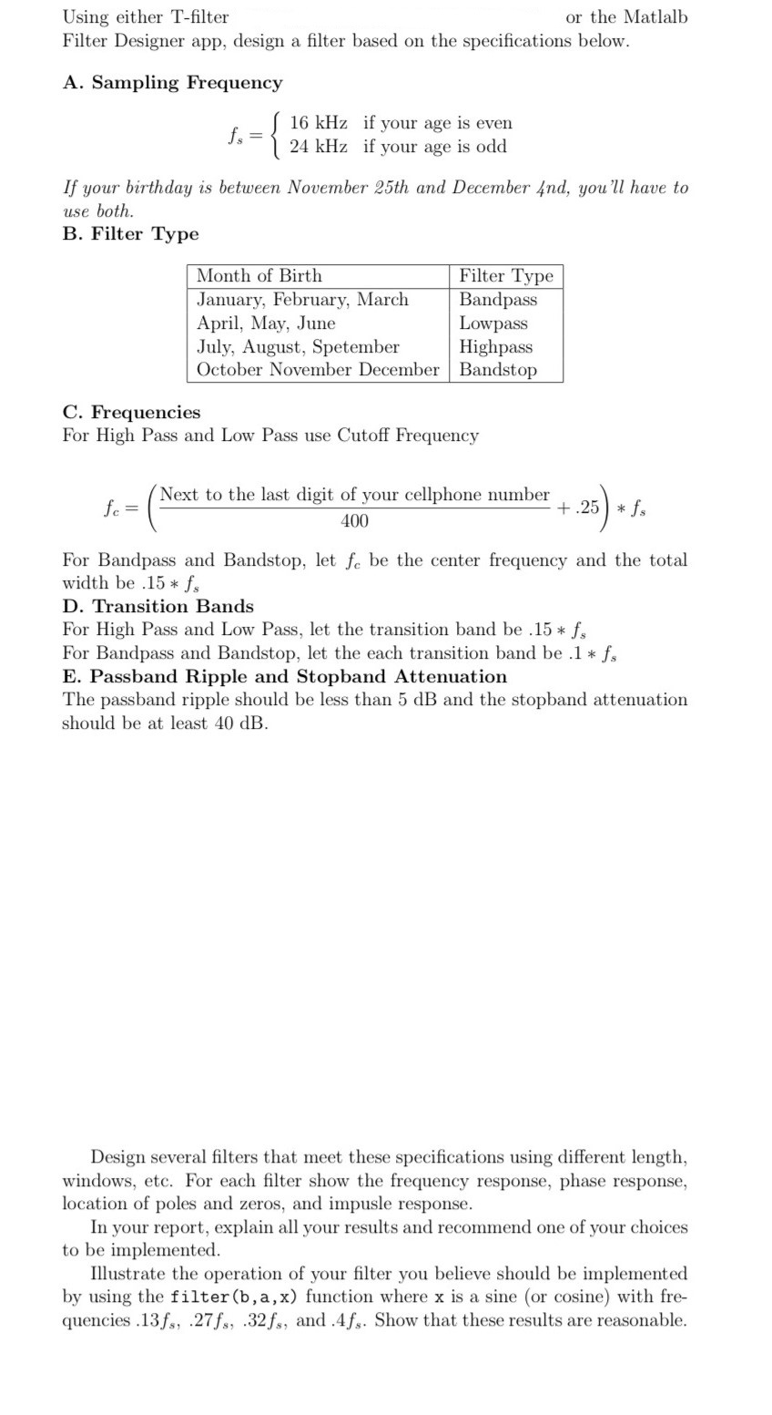 Using either T-filter or the Matlalb Filter Designer app, design a...